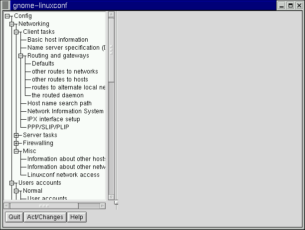 Linuxconf provides a tree menu of its hierarchical structure.