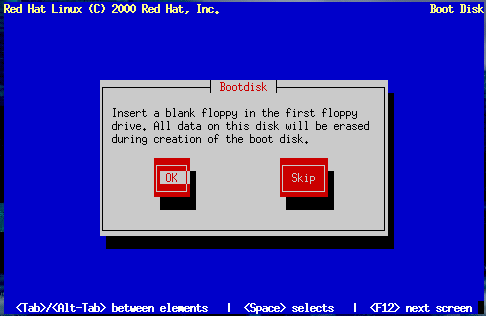 For instructions on how to create a boot disk after the installation, read the mkbootdisk man page. Be sure you create a new boot disk if you make any changes to your kernel.