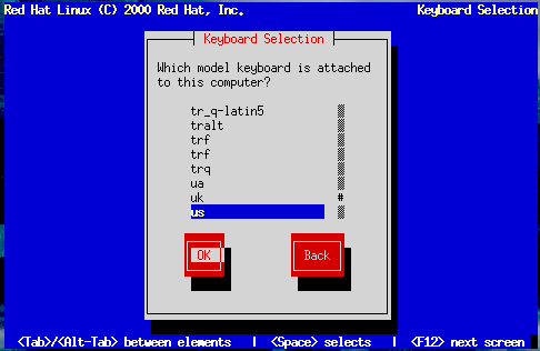 If you wish to change your keyboard type after you have installed your Red Hat Linux system, become root and type either /usr/sbin/kbdconfig or setup at the root prompt. |