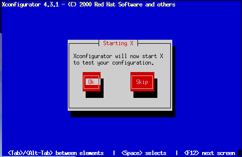 If you select OK, you'll have the opportunity to go back enter different configuration values should there be an error. If there is no error, X will start, and a small display window will ask you if you can read its contents clearly: using the mouse, click Yes within ten seconds. Then you are asked whether you want X to start when the system boots.