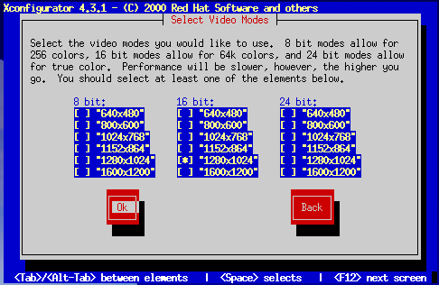If you select Custom, Xconfigurator prompts you to select the horizontal sync range and vertical sync range of your monitor (these values are usually available in the documentation which accompanies your monitor, or from your monitor's vendor or manufacturer).