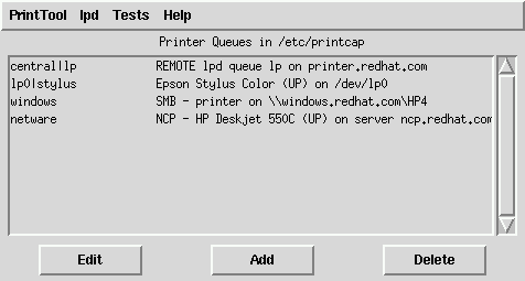 Please note that the Official Red Hat Linux Getting Started Guide contains more up-to-date documentation on printtool, so be sure to check that document before using printtool.
