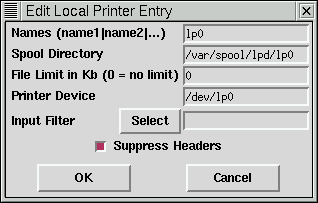 Printer Device -- Usually /dev/lp1; the name of the port which the printer is attached to. Serial printers are usually on /dev/ttyS? ports. Note that you will need to manually configure serial parameters.