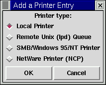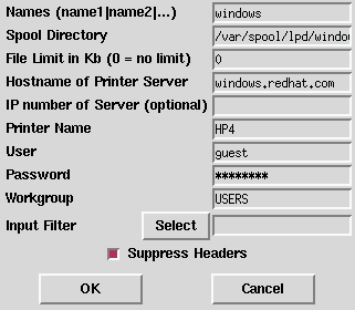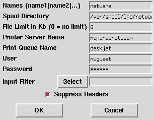 If you require a username and password for an SMB (LAN Manager) or NCP (NetWare) print queue, they are stored unencrypted in a local script. Thus, it is possible for another person to learn the username and password. It is therefore recommended that the username and password for use of the printer to be different than that for a user account on the local Red Hat Linux system, so that the only possible security compromise would be unauthorized use of the printer. If there are file shares from the SMB server, it is recommended that they also use a different password than the one for the print queue. |