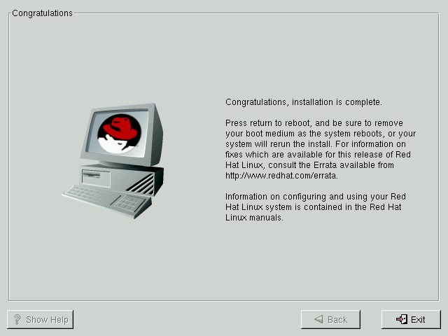 Congratulations! Your Red Hat Linux 7.0 installation is now complete!