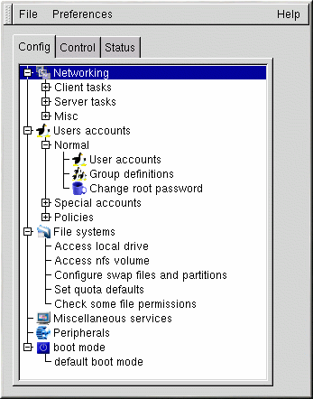 Gnome-Linuxconf makes it easy to navigate the hierarchical structure of Linuxconf.