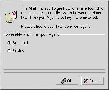 Red Hat Linux 7.3 provides two MTAs: Sendmail and Postfix. If both are installed, sendmail is the default MTA. Red Hat Mail Transport Agent Switcher allows a user to select either sendmail or postfix as the default MTA for the system.