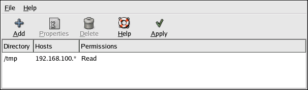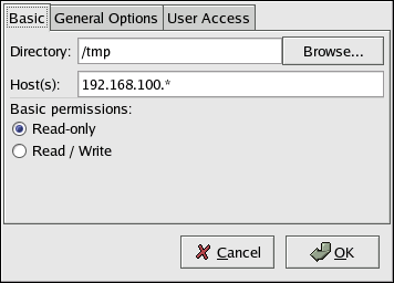 Host(s) — Specify the host(s) to which to share the directory. Refer to the Section called Hostname Formats for an explanation of possible formats.