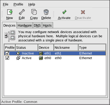 To use the Network Administration Tool, you must have root privileges. To start the application, go to the Main Menu Button (on the Panel) => System Settings => Network, or type the command redhat-config-network at a shell prompt (for example, in an XTerm or a GNOME terminal). If you type the command, the graphical version is displayed if X is running, otherwise, the text-based version is displayed. To force the text-based version to run, use the redhat-config-network-tui command.