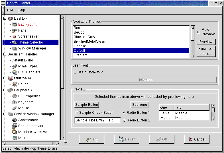 Not sure you'll be happy with your selections? Click on the Try button to see what your desktop will look like with your changes. If you don't like it, just click on the Revert button to return to your original settings. |