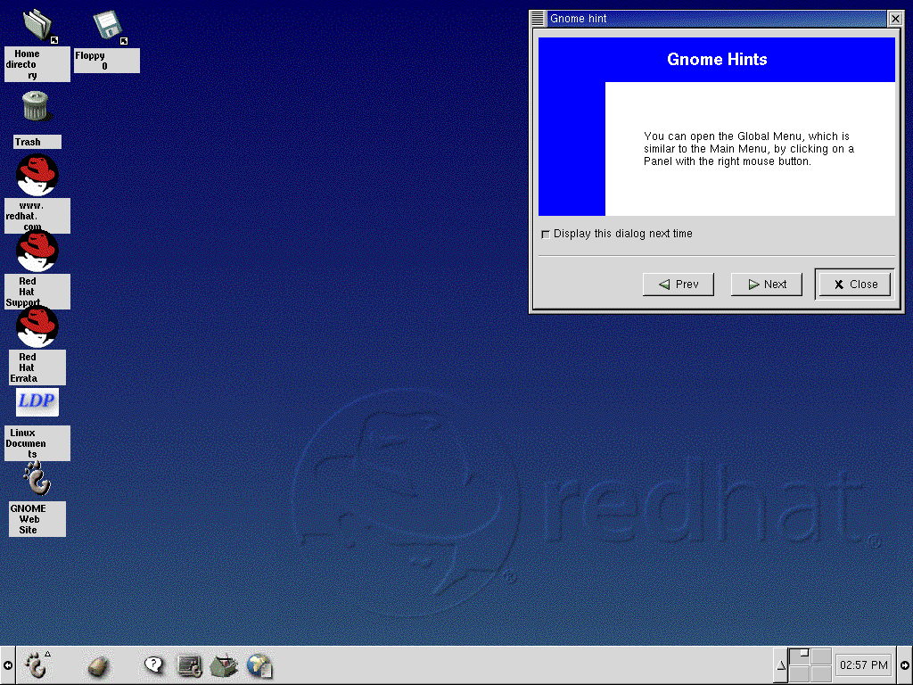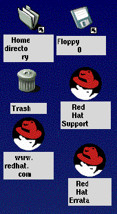 Launchers can also be shortcuts to websites. By double-clicking on the launcher labeled Red Hat Support on your desktop, for example, your Netscape Navigator browser will open and go to Red Hat's online support site.