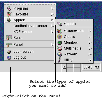 Right-click on the Panel; select Applets (see Figure 2-5)