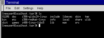 [newuser@localhost /skel]$ cd /usr [newuser@localhost /usr]$ ls |
