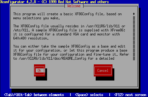 To use Xconfigurator, you must log in as root. At a shell prompt, type Xconfigurator to start the application. The opening screen will look like Figure 17-3.