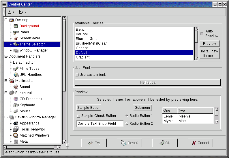 Not sure you'll be happy with your selections? Click on the Try button to see what your desktop will look like with your changes. If you don't like it, just click on the Revert button to return to your original settings. |