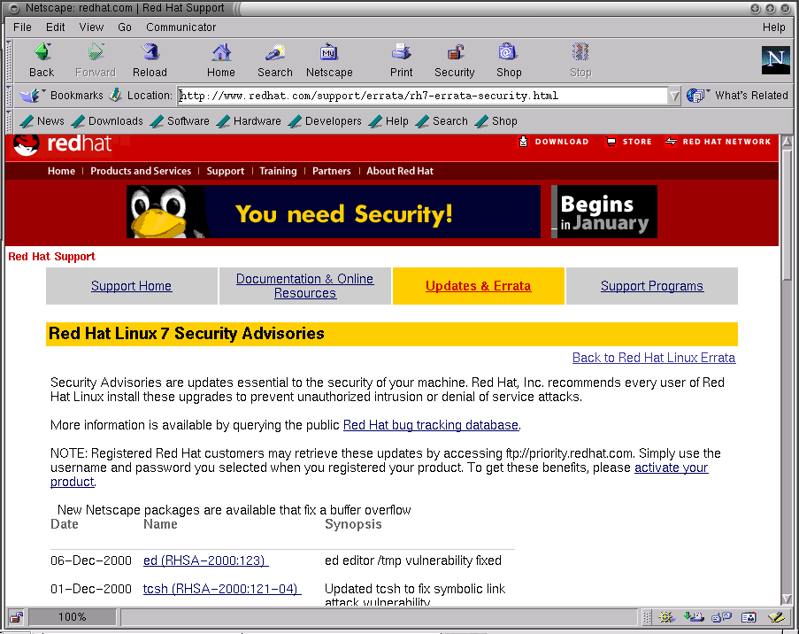You can then follow the instructions under Solution on the errata page to upgrade RPMs, or upgrade using the RPM application. See the Official Red Hat Linux Customization Guide for more information on RPM.