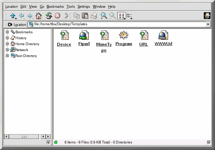 Mime Type — Creates a link to an application or text file. (MIME means Multipurpose Internet Mail Extensions; they're used to describe different data so that the operating system knows how to work with it when that data is selected.) You won't need this template often, since many MIME types are already available with KDE.