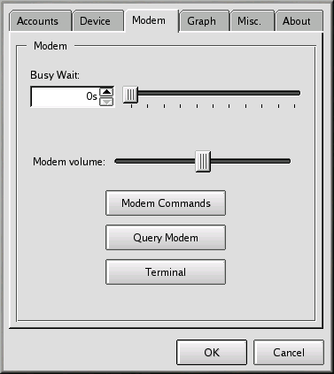 Check the documentation supplied with your modem for specifics on your modem's initialization string, dial string, and other settings. |