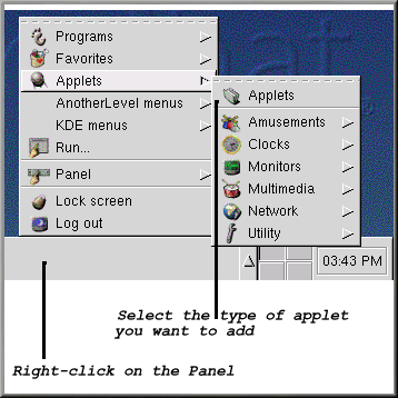 Right-click on the panel; select Applet and choose from the list of applets (see Figure 2-5).