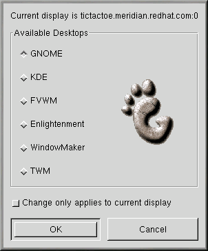 If you performed a workstation install, the Switchdesk utility will show options for GNOME and other desktop environments. Custom installations may display even more options. |