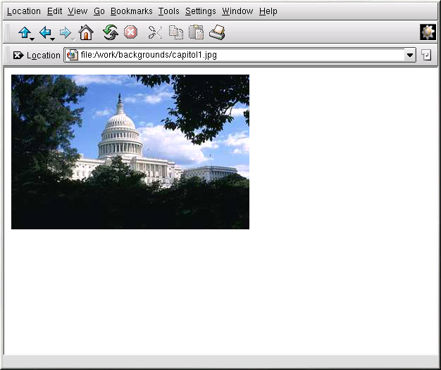 Konqueror works similarly to Nautilus. Image files within a folder are displayed as automatically-generated thumbnail icons within the browser. When you click on a thumbnail icon, the browser displays the image in its native size, as shown in Figure 10-3.