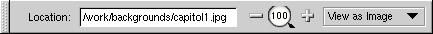 To increase and decrease the size of the viewed image in Nautilus, click on the magnifying glass icon on the location bar as shown in Figure 10-2: