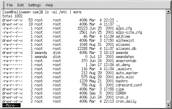 ls -al /etc | more |