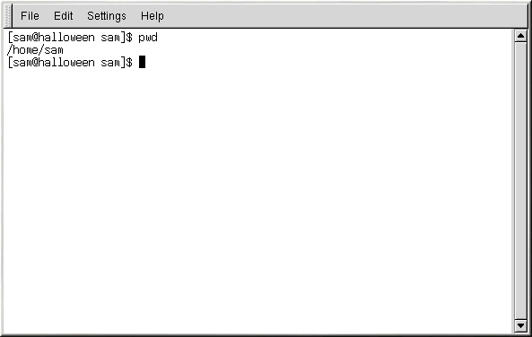 This tells you that you are in the user sam's directory, which is in the /home directory.