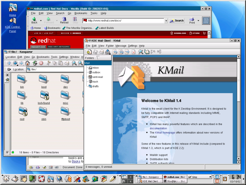 When you installed Red Hat Linux you had the opportunity to install the GNOME desktop environment, the KDE desktop environment, or both desktops. If you installed both desktops, you were given the opportunity to choose a default desktop. Once you start the X Window System, you will find a graphical interface known as a desktop similar to Figure 1-5 in GNOME or Figure 1-6 in KDE.