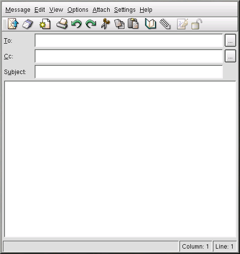 Before you can really use KMail, you must configure it so it can send and receive mail. To run the configuration tool, select Settings from the KMail toobar, and click on Configure KMail.