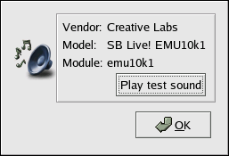 To use the Sound Card Configuration Tool, choose Main Menu => System Settings => Soundcard Detection. A small text box will pop up prompting you for your root password.