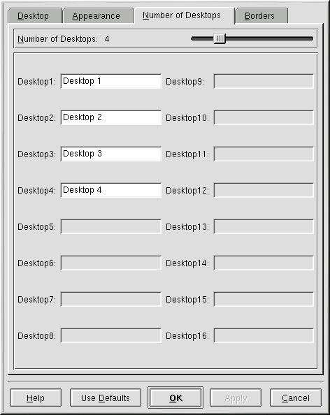 You can also change the number of desktops available to you by adjusting the slider at the top of the Number of Desktops tab. For more desktops, drag the bar to the right; for fewer desktops, drag the bar to the left.