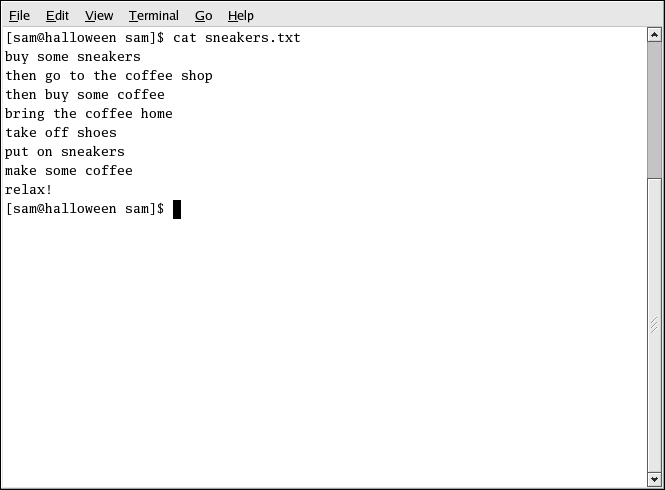 [sam@halloween sam]$ cat sneakers.txt cat: sneakers.txt: Permission denied [sam@halloween sam]$ |