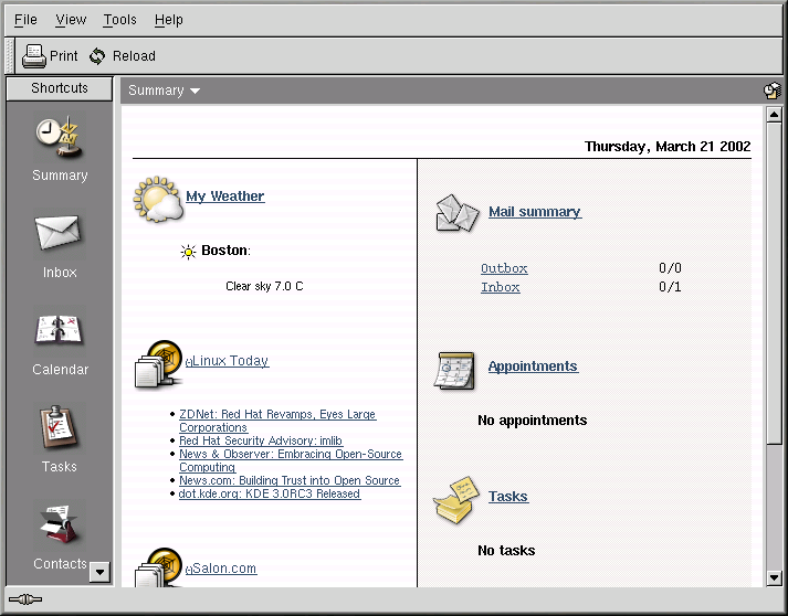 Evolution is more than just an email client. It provides all of the standard email client features, including powerful mailbox management, user-defined filters, and quick searches. It additionally features a flexible calendar/scheduler which allows users to create and confirm group meetings and special events online. Evolution is a full-featured personal and workgroup information management tool for Linux and UNIX-based systems, and is the default email client for Red Hat Linux.