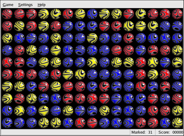 To start a game, click Main Menu => Games and select the game of your choice. Figure 10-7 shows a fun game for kids of all ages called Same GNOME. In this game you point your mouse at matching marbles until they start to spin; then, you can click them to make them disappear. The object of the game is to make all the marbles disappear.