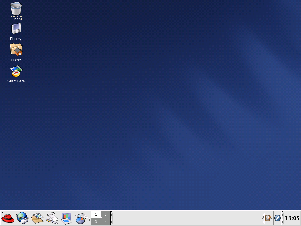 The default KDE desktop displays icons for the trash can, your home directory, the Start Here icon for applications and configuration tools, and a diskette icon. You can access any one of these resources by double-clicking on the associated icon.