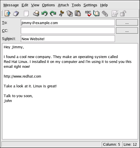 KMail is an email tool for KDE. It has an intuitive graphical interface similar to Evolution that allows you to send and receive email using a graphical interface. To open KMail, click on the Main Menu => Internet => More Internet Applications => KMail.