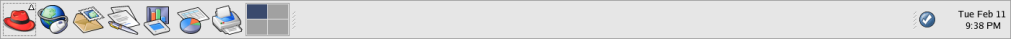 Panel: A desktop toolbar, usually located across the bottom of your desktop (such as Figure 1-6). The panel contains the Main Menu button and shortcut icons to start commonly used programs. Panels can also be customized to suit your needs.