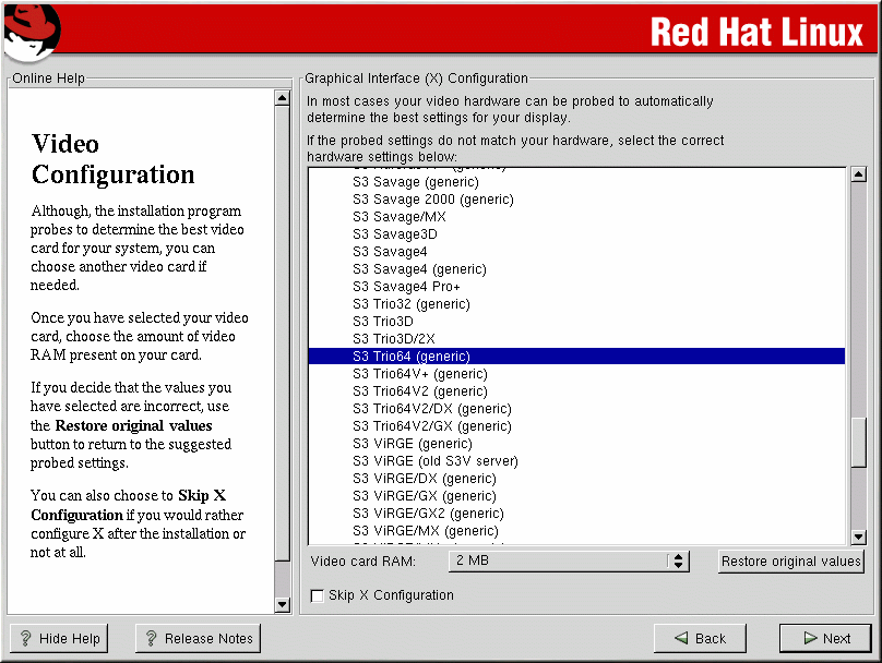 You can also select Skip X Configuration if you would rather configure X after the installation or not at all.