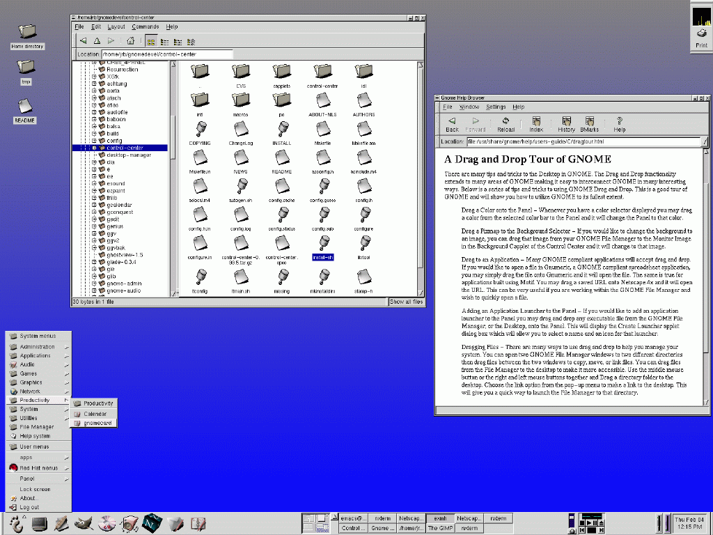 GNOME is a powerful graphics-driven desktop environment. GNOME includes a panel (for starting applications and displaying status), a desktop (where data and applications can be placed), multiple window managers (which control the look and feel of your desktop), and a standard set of desktop tools and applications.