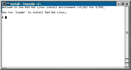 When loader starts, there will be several text mode screens for selecting the installation method. Refer to the Section called Installing from Hard Drive (DASD) in Chapter 3 and the Section called Installing over a Network in Chapter 3 for information on these screens.