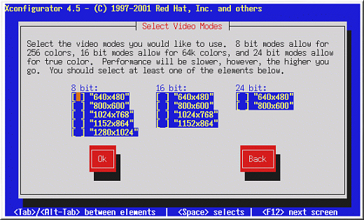 If you are not sure how much memory your card has, consult the documentation accompanying your video card. Choosing more memory than is present in your card will not damage it, but may cause the XFree86 server to start incorrectly.