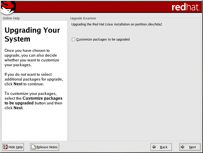 Do you want to choose the packages to be upgraded or let the installation program perform an automated upgrade (see Figure A-2)?