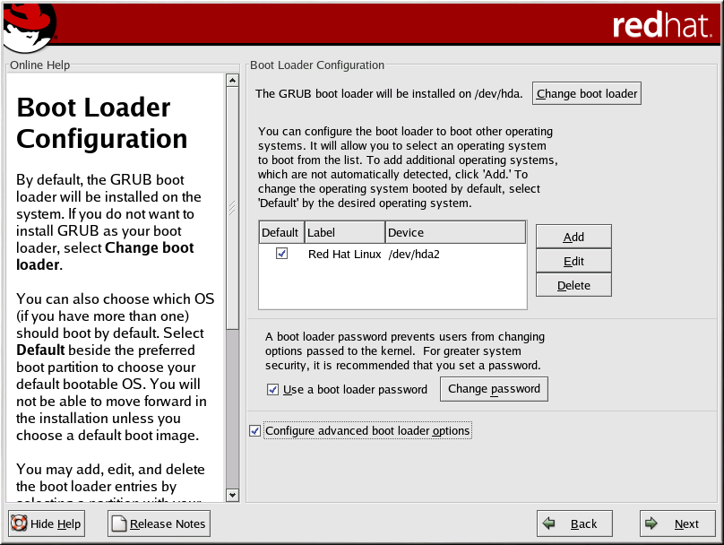 If you choose to use a boot loader password to enhance your system security, be sure to select the checkbox labeled Use a boot loader password.