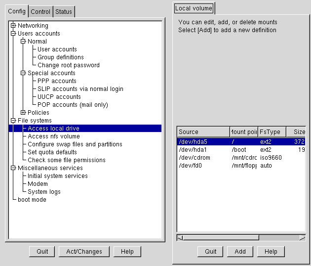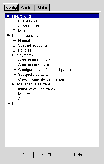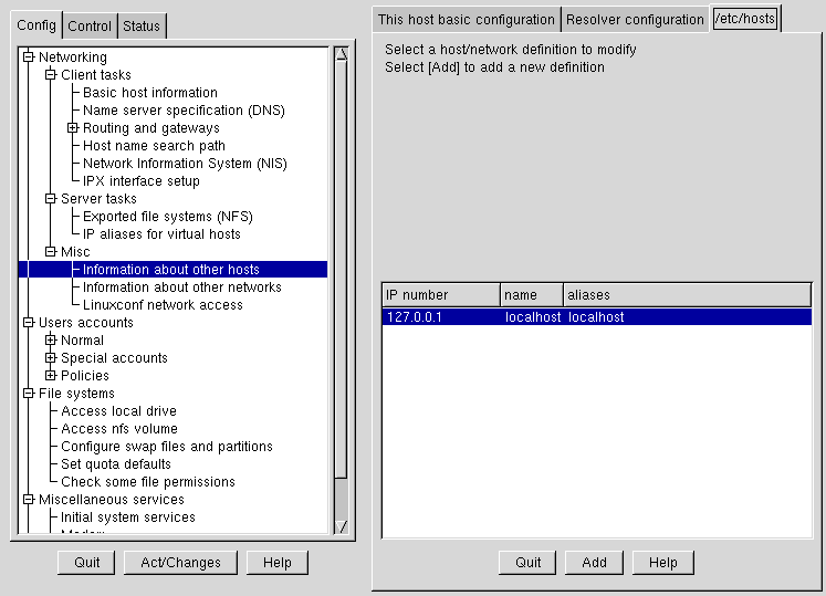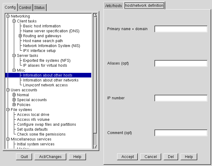 A configuration activator — When you're satisfied with your edits, you tell linuxconf to apply the changes you've made.