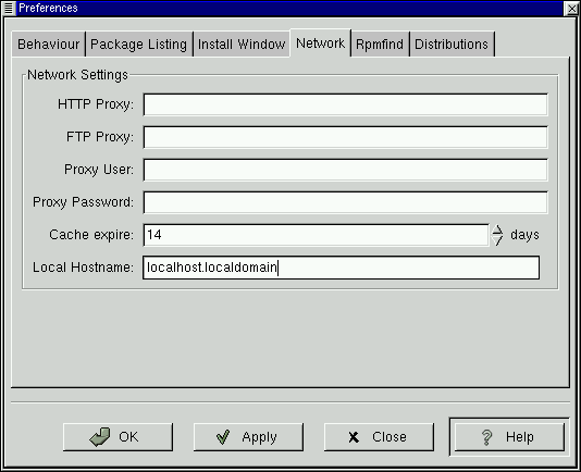 In the Cache expire window, you can set the length of time before data from the rpmfind database is considered out of date.