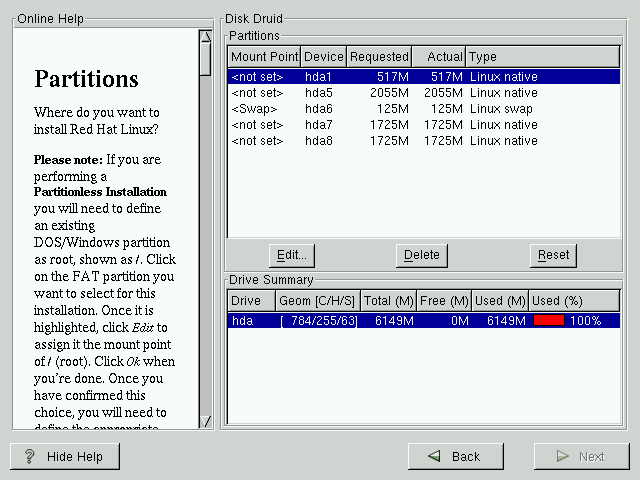 Prev | Chapter 15. Installing Red Hat Linux via the GUI | Next |