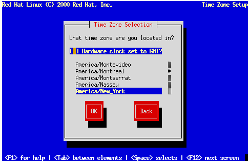If you wish to set the hardware (CMOS) clock to GMT (Greenwich Mean Time, also known as UTC, or Universal Coordinated Time), select Hardware clock set to GMT. Setting it to GMT means your system will properly handle daylight-saving time, if your time zone uses it.