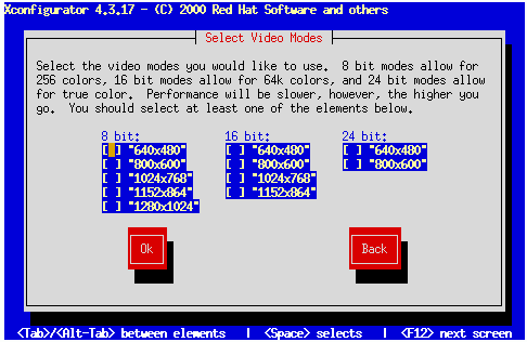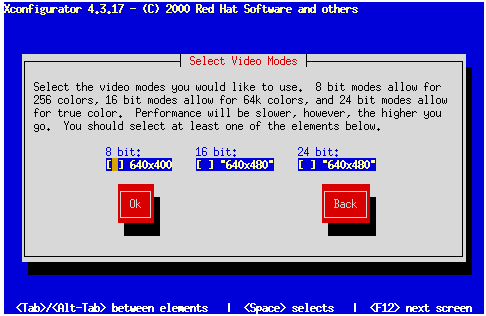However, if a previous attempt to probe video modes ended with a bad result (such as having to reboot your system), you should choose Skip and then choose your preferred video modes (see Figure 14-52).