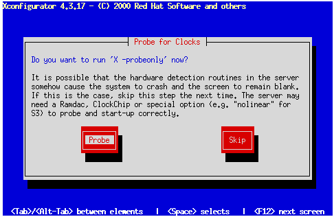 The Probe for Clocks screen (see Figure 14-50) prompts you to allow the installation program to detect what video modes your video card and monitor are capable of using.